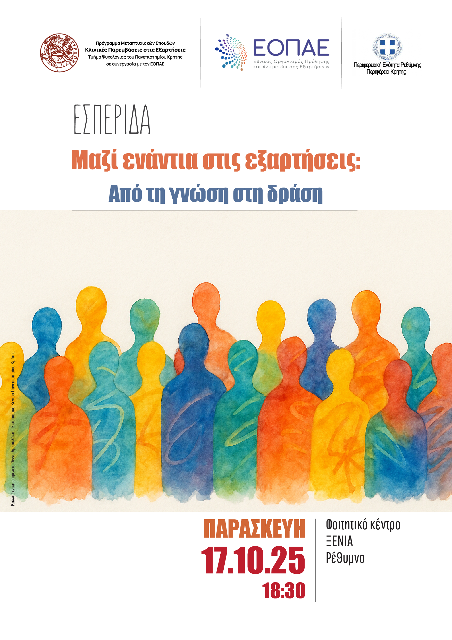 Εσπερίδα την Παρασκευή, 17 Οκτωβρίου 2025 και ώρα 18:30, στο Φοιτητικό κέντρο ΞΕΝΙΑ στο Ρέθυμνο.